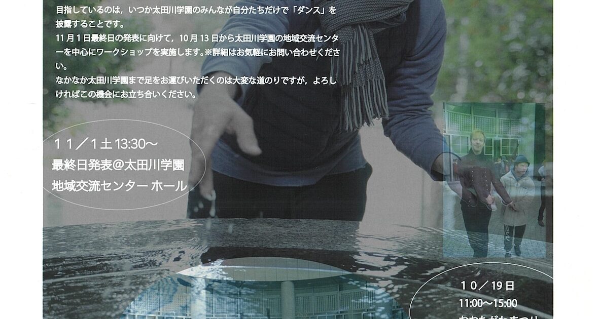 太田川学園様からお知らせをいただきました。 ダンスワークショップ 秋の生ダンス 2024年、フィリップさんとガエタンさんのおふたりと、太田川学園のみんなの交流が始まりました。それは「ダンス」を通じたものです。 おふたりが […]