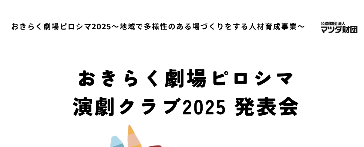一般社団法人舞台芸術制作室無色透明 様より演劇発表会のお知らせをいただきました。 おきらく劇場ピロシマ 演劇クラブ2025 発表会 <開催概要> ■ 開催日時 12月21日(日) 14:00■ 会 場 合人社ウェン […]